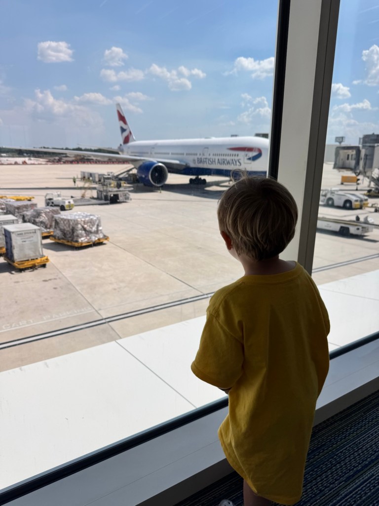We don’t have enough space in the car for suitcases and a car seat box, so we pack the box flat, and use the car seat for the journey to the airport – it also works if you’re taking a taxi or a friend is dropping you off at the airport as you can use the car seat first.